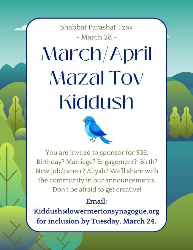 Our community has grown with us and now numerous local institutions support and serve Orthodox families. Today, with Rabbi Avraham Shmidman as the Morah D’Asra, LMS continues its membership growth and the synagogue has thriving multiple daily minyanim, a dynamic and exciting youth program, and shiurim, daf yomi and other educational programs that attract people from all over the Southeastern PA area.